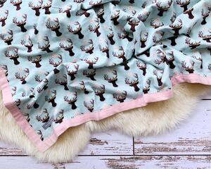 Double Layer Flannel Blanket - Stag Head/Powder Pink